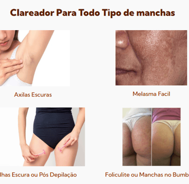 Porque ele foi criado para agir nos principais tipos de manchas que mais afetam a autoestima. Veja como ele transforma sua pele: